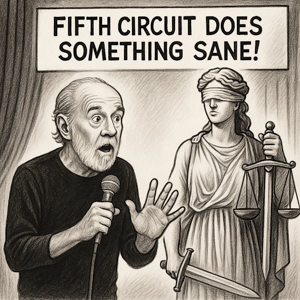 But now, ladies and gentlemen, children of all ages, in a twist so unexpected it’s practically biblical—the Fifth Circuit got something RIGHT. I know! I had to read it twice myself. Thought I was hallucinating. Must’ve been the asbestos in the American Dream.
