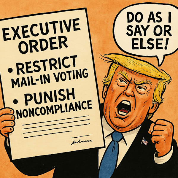 So now we’ve got the FOTUS pulling another page out of the Dictator Coloring Book, this time with an executive order aimed at vote-by-mail, because apparently, voting while not sweaty and standing in line is un-American now.