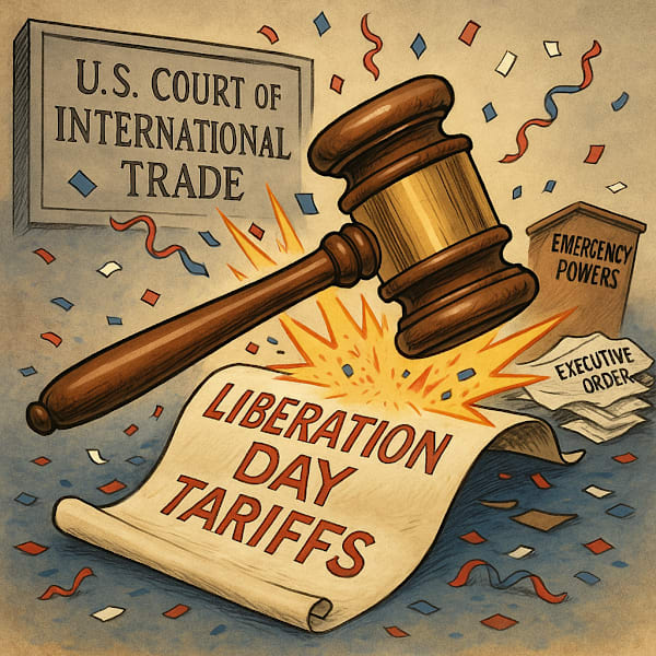 So, the big news? The U.S. Court of International Trade just told Trump to take his "Liberation Day" tariffs and shove 'em where the sun don't shine.