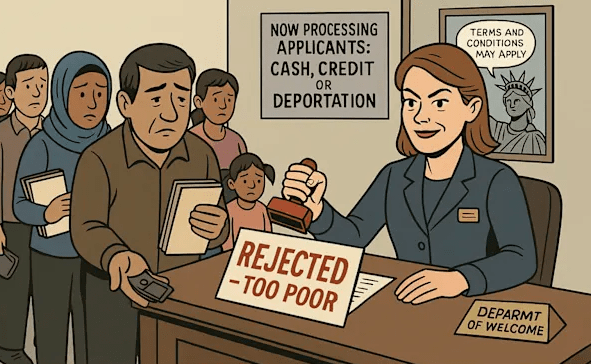 We’re turning immigration into a pay-to-play scam, like it’s goddamn Monopoly and poor people landed on Boardwalk with nothing but trauma and dreams.