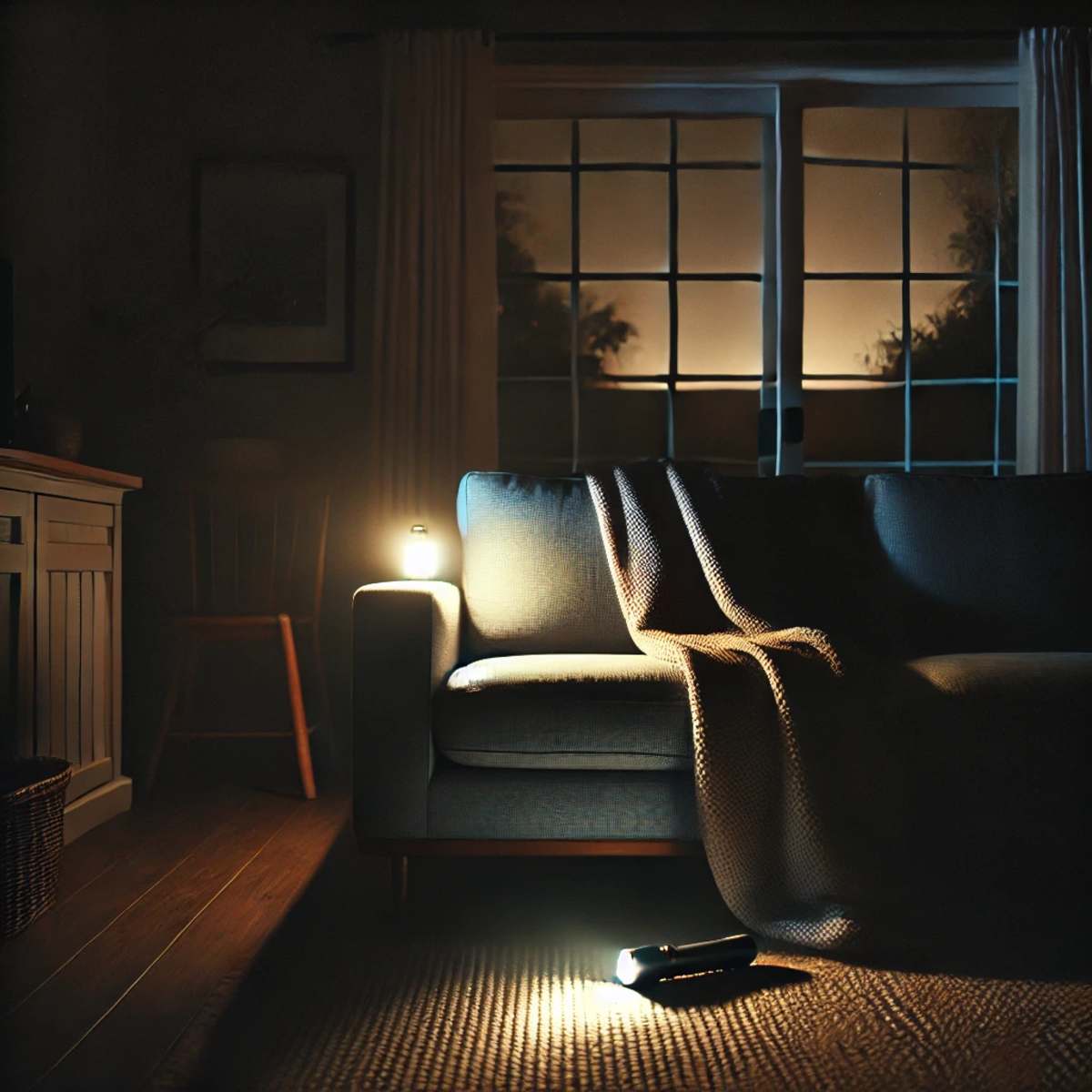 He pulled a metal flashlight from between the couch and side table. I recognized it—one he used when working on cars.