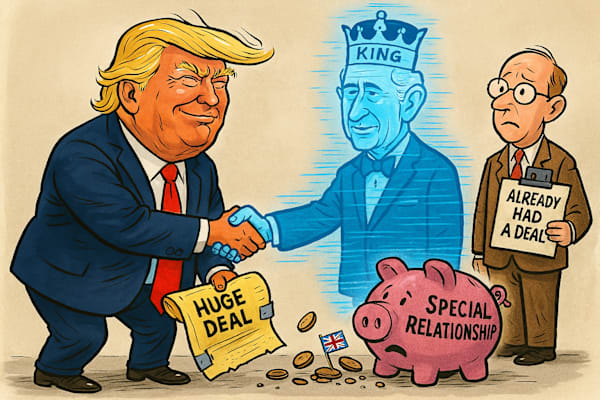 Meanwhile, the U.K.—God love ’em—is over there smiling through their teeth, pretending this is a good idea because Brexit left them wandering around like a drunk tourist asking where the exit is.