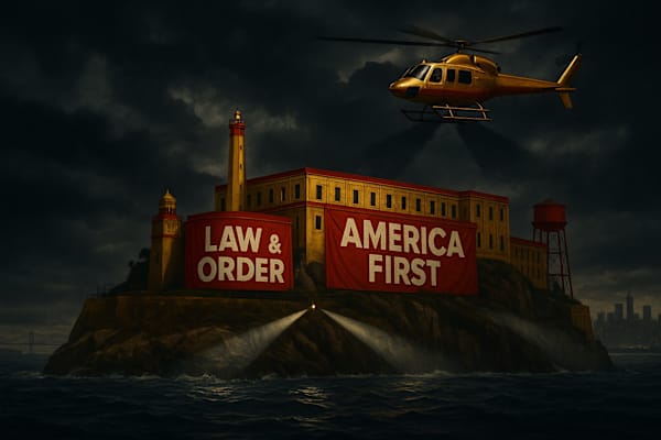 That’s right. The big spooky prison on the rock. The one that hasn’t held a prisoner since the Beatles were playing clubs in Germany. And why? Because Daddy Donny and Baby Don Jr. think it would make a great place to stash all those “violent criminals” and—wink wink—“traitors.”