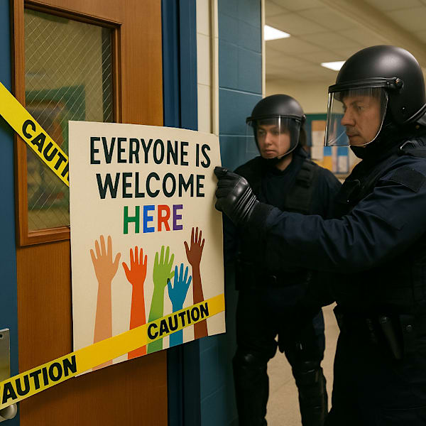 Here’s a wild thought: if a poster about inclusion makes your political party feel threatened, maybe—just maybe—you’re on the wrong side of the Welcome Mat.