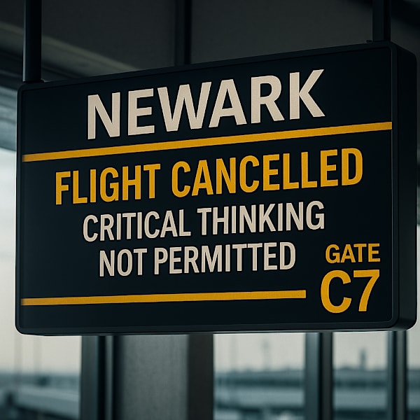 And don’t think the delays are an accident. No, no, no. This is economy class authoritarianism. It’s not tanks in the streets, it’s “Your flight has been cancelled due to a lack of American values.” It’s “We regret to inform you that dissent no longer qualifies for priority boarding.”