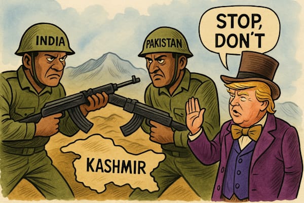 Two nuclear-armed countries, both with centuries of unresolved history and about twelve brain cells’ worth of diplomatic restraint between them, start lobbing artillery over a border that’s seen more tension than a Thanksgiving dinner at the Murdoch house.